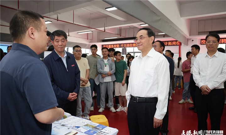 6月13日,省委书记、省人大常委会主任徐麟调研就业工作并主持召开座谈会,强调要深入学习贯彻习近平总书记关于就业工作的重要论述和对贵州工作重要指示精神,牢牢把握新时代新征程就业工作的新定位、新使命,把就业当作民生头等大事来抓,大力实施“六六就业稳岗计划”,促进高质量充分就业。省委副书记、省委政法委书记时光辉,省领导胡忠雄、郭锡文参加有关活动。