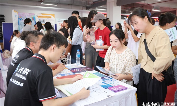 图为beat365中国官网2024年“百日攻坚”毕业生离校专场招聘会现场。
