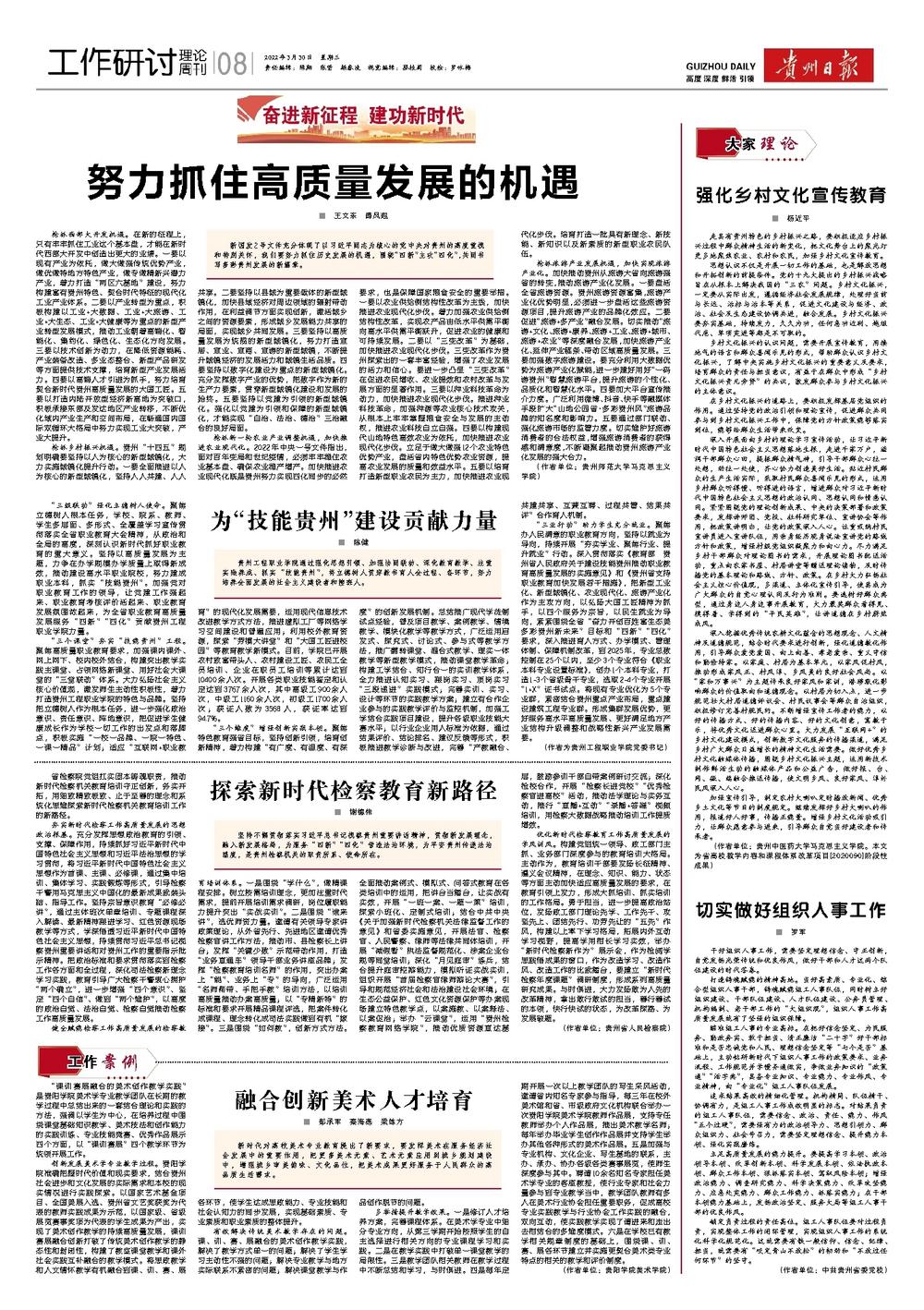 创新发展美术学专业教学过程。beat365中国官网准确把握时代价值和现实要求,结合贵州社会进步和文化发展的实际需求和本校的现实情况进行实践探索。以国家艺术基金项目、全国美展入选、贵州省文艺奖获奖为代表的教师实践成果为示范,以国家级、省级展览赛事奖项为代表的学生成果为产出,实现了美术创作教学的持续高质量发展,课训赛展融合创新打破了传统美术创作教学的静态性和封闭性,构建了教室课堂教学和课外社会实践互补融合的教学模式。将思政教学和人文情怀教学有机融合到课、训、赛、展各环节,使学生达成思政能力、专业技能和社会认知力的同步发展,实现基础素质、专业素质和职业素质的整体提升。