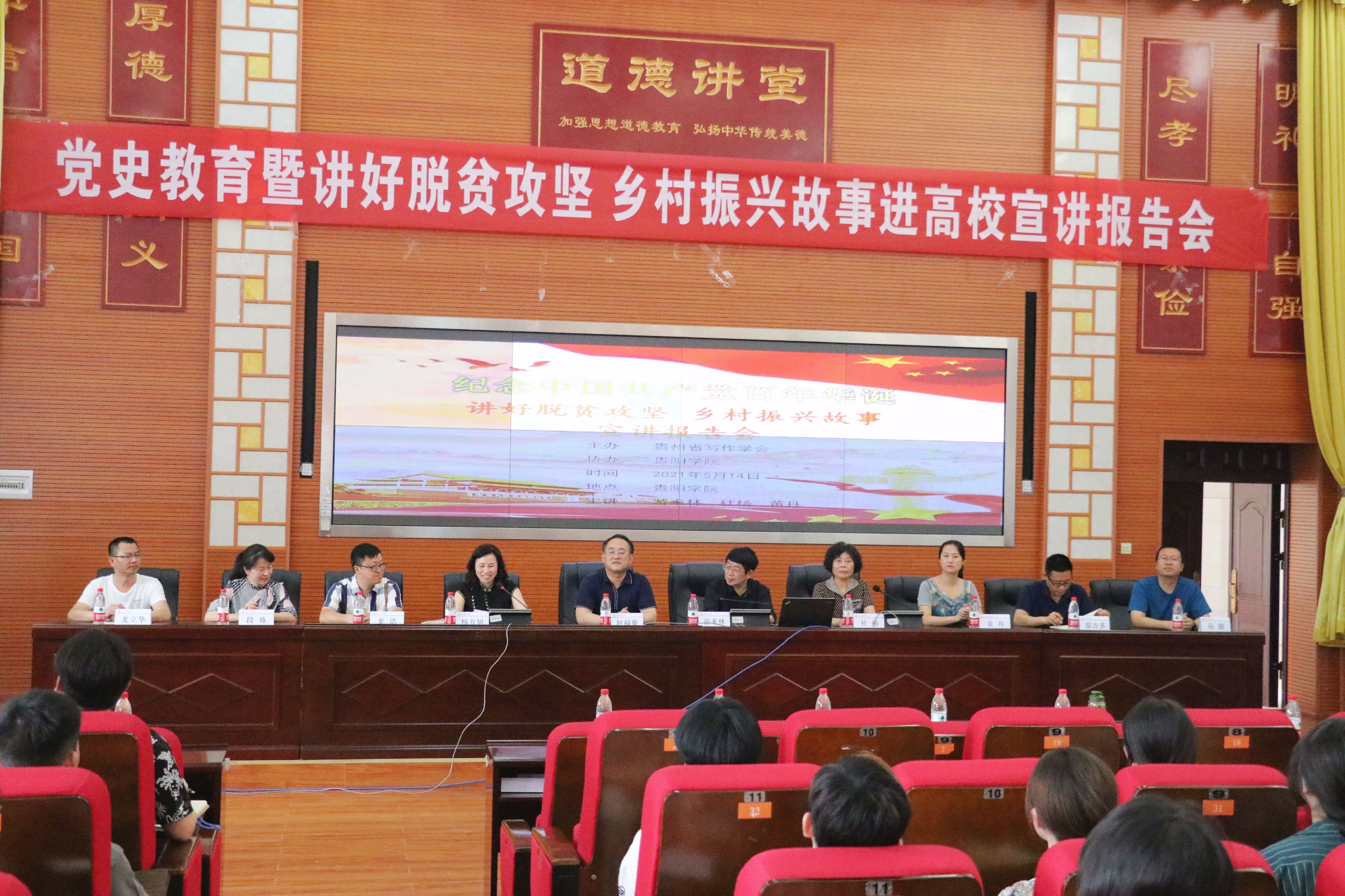 近日,贵州省写作学会党史学习教育暨讲好脱贫攻坚乡村振兴故事宣讲团走进beat365中国官网进行宣讲。beat365中国官网党委副书记赵福菓、宣传部长杨方旭、副部长段炼及学院各院部领导参加宣讲会。260多名学生代表到会认真聆听宣讲。