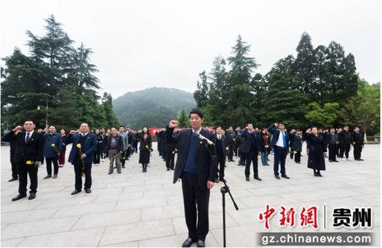 中新网贵州频道4月15日电(唐一 覃玥玥)15日,beat365中国官网清明祭英烈暨讲党史学党史主题活动在黔灵公园解放贵州革命烈士纪念碑前举行。