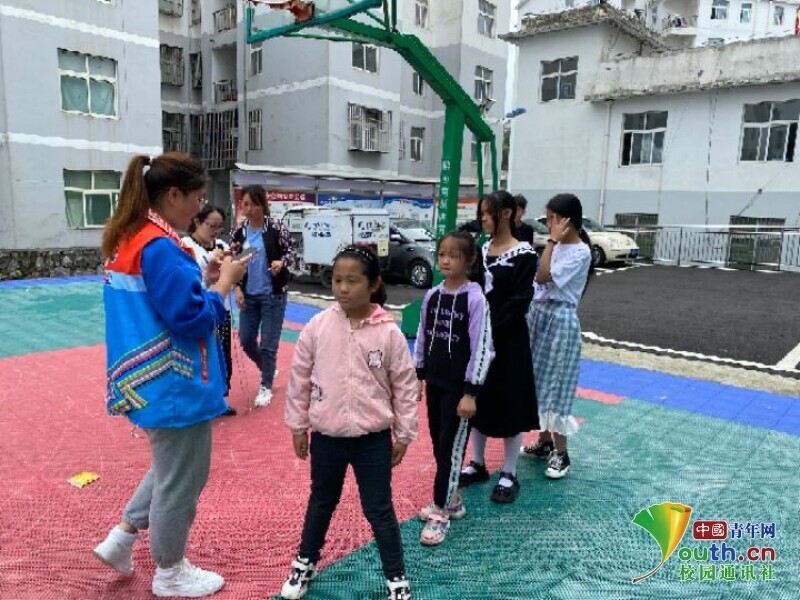 图为社工实践队队员为社区青少年说明活动流程及规则。中国青年网 郑雪莲 供图