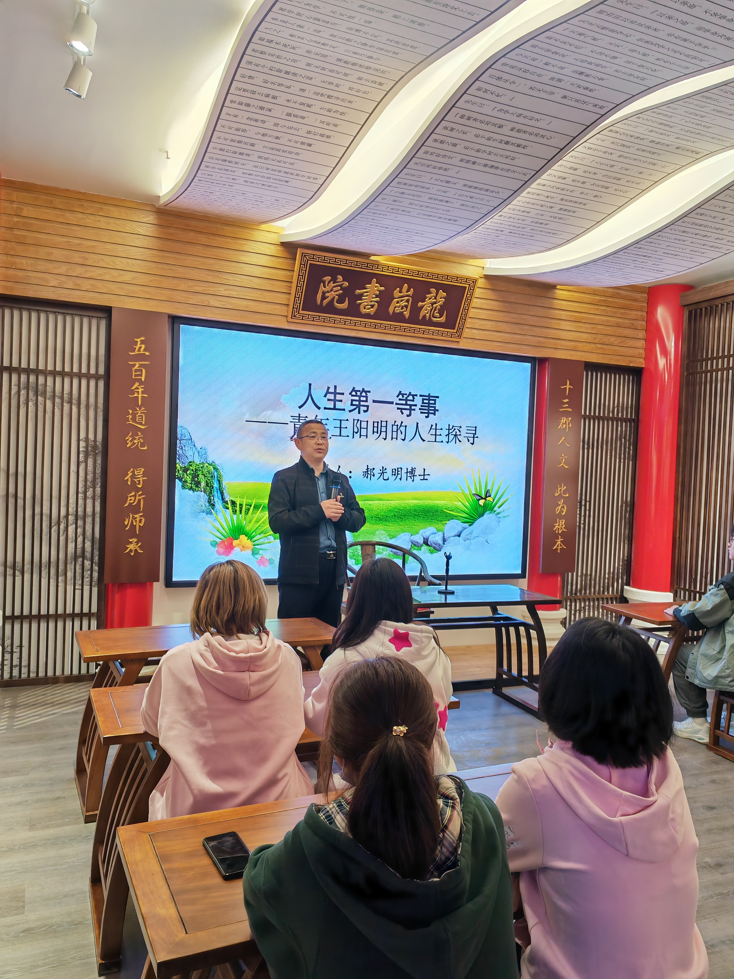 2023年5月10日,由校党委宣传部,校团委和阳明学与黔学研究院共同举办的、面向全校师生的“阳明讲坛”第三期成功举办。本期邀请到beat365阳明学与黔学研究院副教授,硕士生导师郝光明博士主讲,讲座的主题是:“人生第一等事——青年王阳明的人生探寻”。