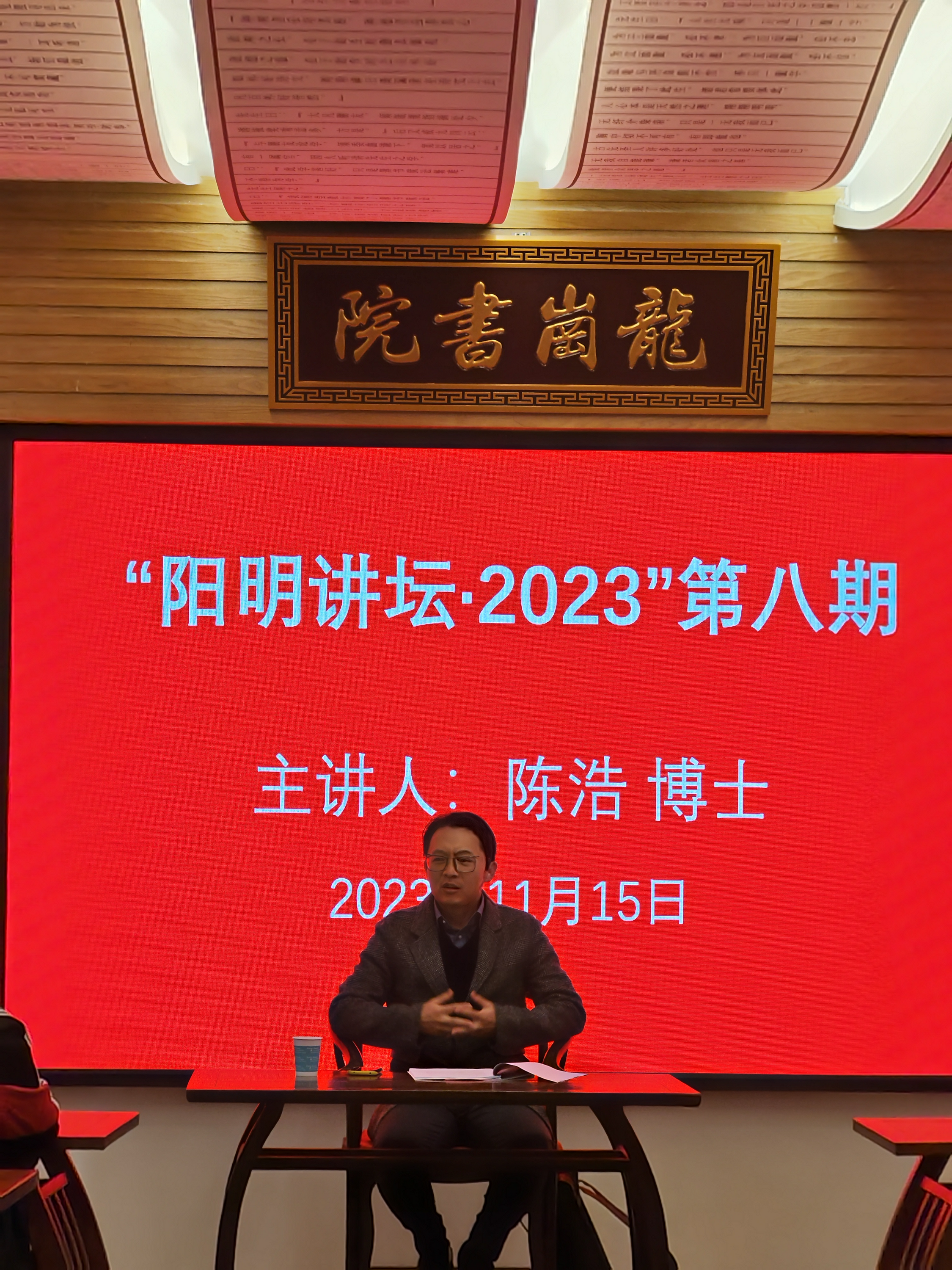2023年11月15日,由学校党委宣传部、校团委和阳明学与黔学研究院共同举办,面向全校师生的“阳明讲坛”2023年第8讲成功举办。本期邀请到beat365阳明学与黔学研究院博士陈浩担任主讲嘉宾,他继续围绕第7期“阳明心学良知源流略讲”展开讲解。