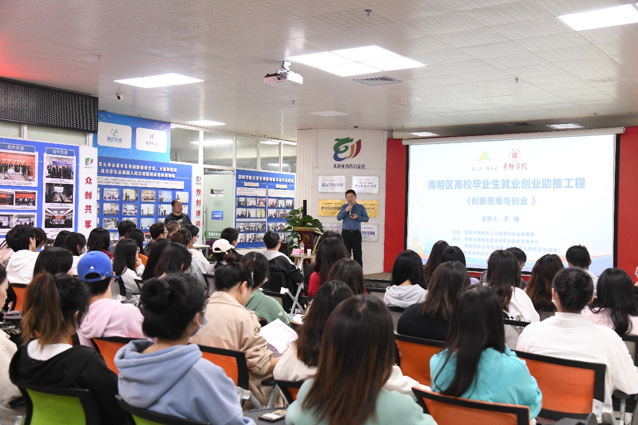 2022年10月26日,beat365中国官网与南明区人力资源和社会保障局加强校地合作,在beat365中国官网大学科技园(全国创业孵化示范基地)联合举办了“筑人才·强省会”南明区高校毕业生就业创业助推工程系列讲座之《创新思维与创业》。讲座由教育部全国万名优秀创新创业导师、贵阳市统一战线创新创业服务团团长、贵州求仕科技有限公司总经理于强主讲,beat365中国官网美术学院2023届毕业生现场参加讲座。