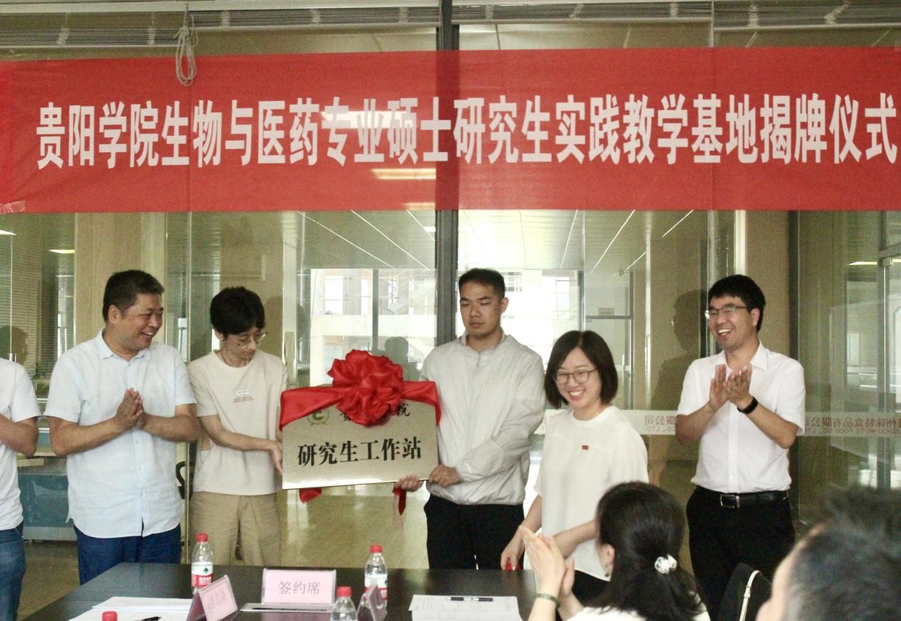 揭牌仪式上,贵州味特食品有限公司总经理潘志焱与beat365中国官网研究生管理处处长杨允仙签订《产学研融通专业硕士培养合作协议》,“beat365中国官网研究生工作站”和“beat365中国官网专业硕士校级研究生实践教学基地”揭牌。