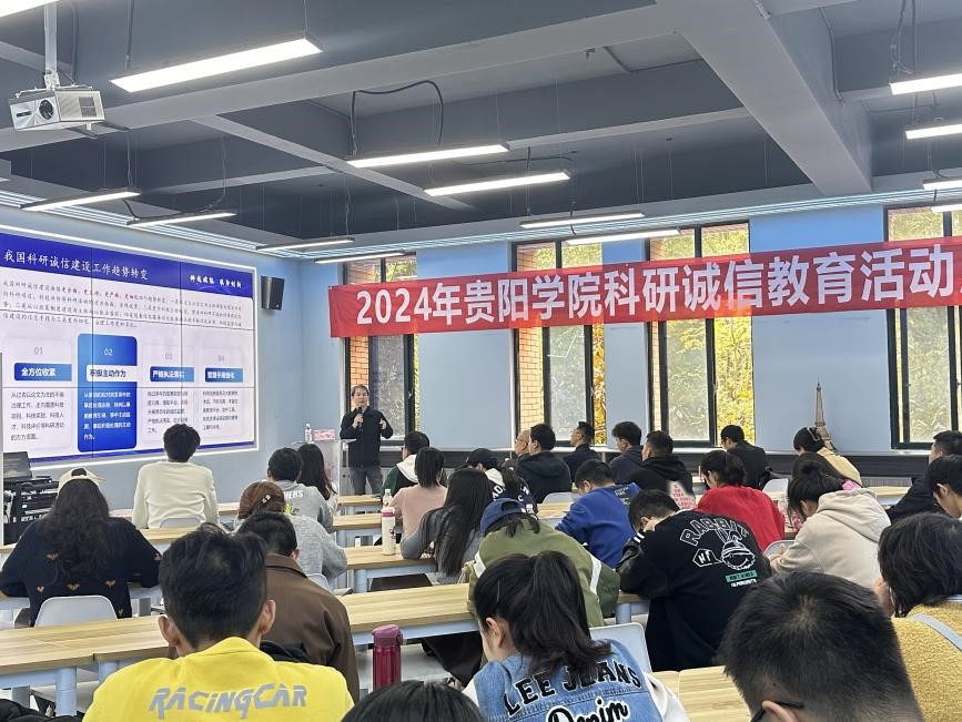 凌锋以“科研诚信从论文学术不端治理抓起”为题,围绕“科研诚信建设的重要性、我国科研诚信建设工作的发展、当前学术不端行为的现状挑战与原因、未来科研诚信建设发展”等内容进行了深入讲解。他强调“科研诚信是科技创新的基石,老师和同学们应该坚守学术道德底线,营造严谨求实的学术氛围。”