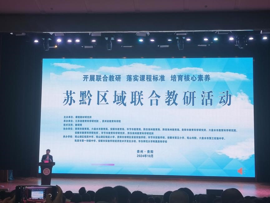 开幕式上,贵州省教育科学院党委委员、院长左泉致欢迎辞。他指出,本次苏黔联合教研活动是贵州省聚焦课程实施,促进学科素养落地的有益探索,是贵州省实施大开放大联合教研,主动融入教育强国建设的具体行动,也是主动服务基础教育高质量发展的生动实践。江苏省教育科学研究院党委书记陆岳新书记在讲话中提到,天下教研是一家,在教研中互相学习,推动教育水平的发展。同时高质量地推广教研活动经验也是必不可少的。