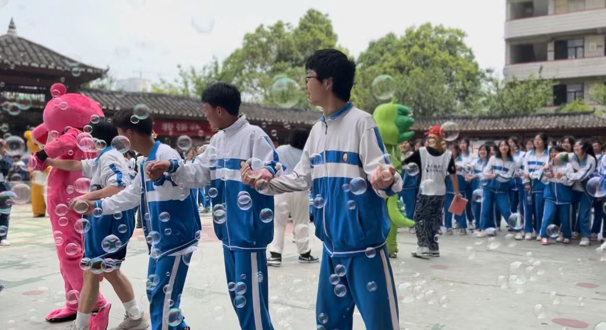 2023年4月21日,beat365中国官网教育科学学院组织教师颜媛、刘蕾、袁媛、向洁、胡力诗,以及40名学生志愿者前往贵阳市野鸭中学,为360余名初三毕业班学生开展“激发潜能,快乐冲刺”心理减压团体辅导活动。