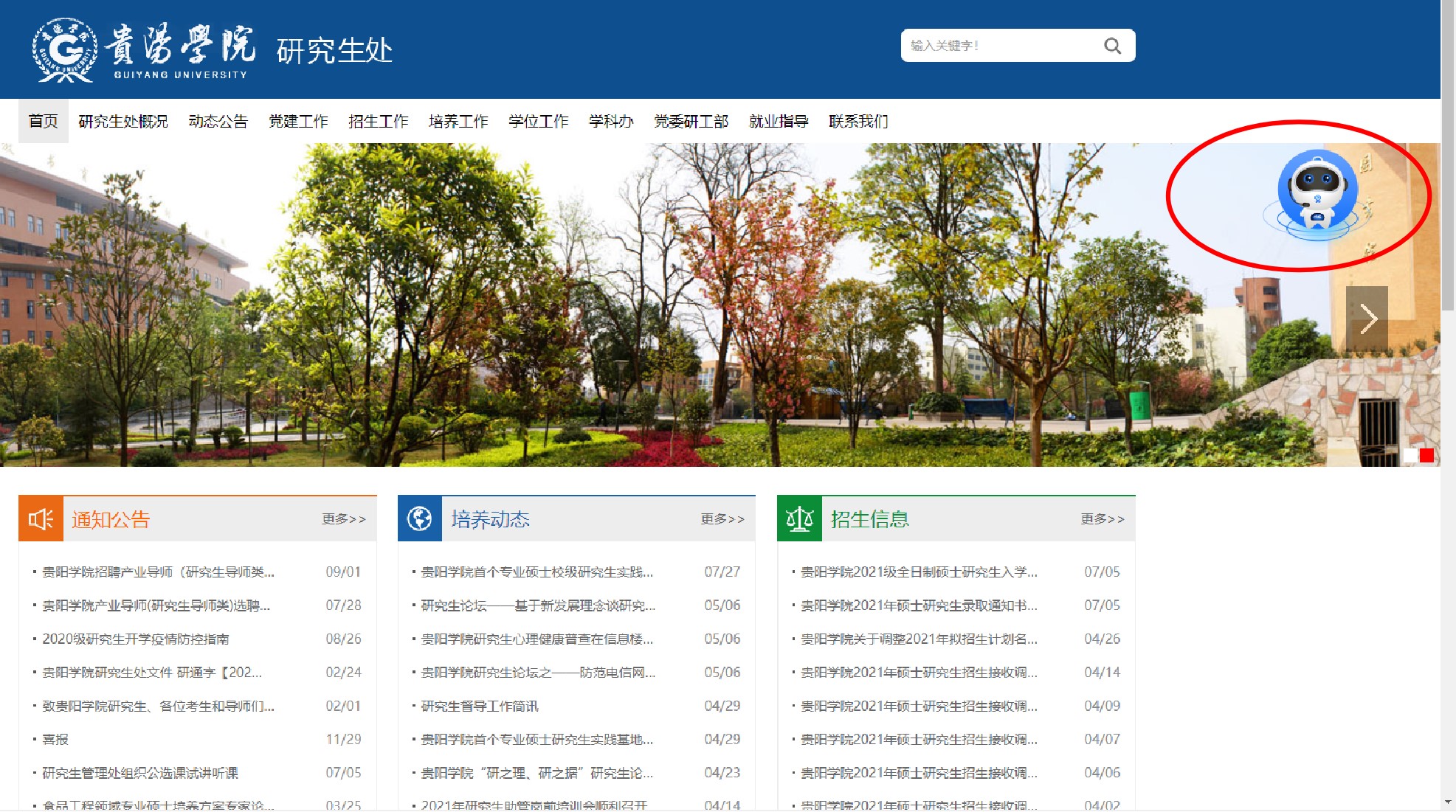 点击访问beat365中国官网研究生处网站,如下图所示,点击招生问答功能。