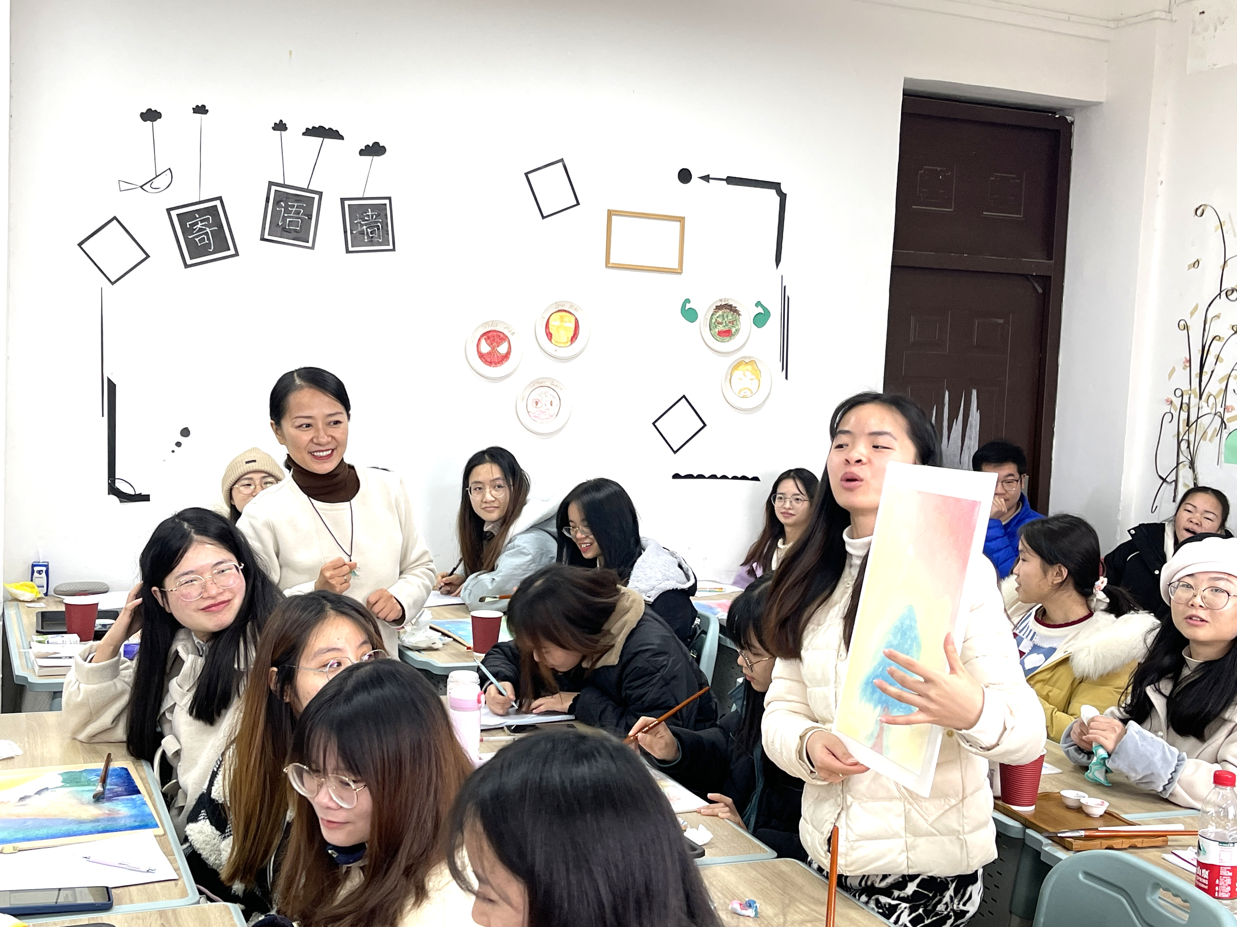 “今天的这节课让我找到了自己的颜色,那就是要充满希望和热情,去迎接每一天的生活。”其中一位同学在展示自己的作品时说道。