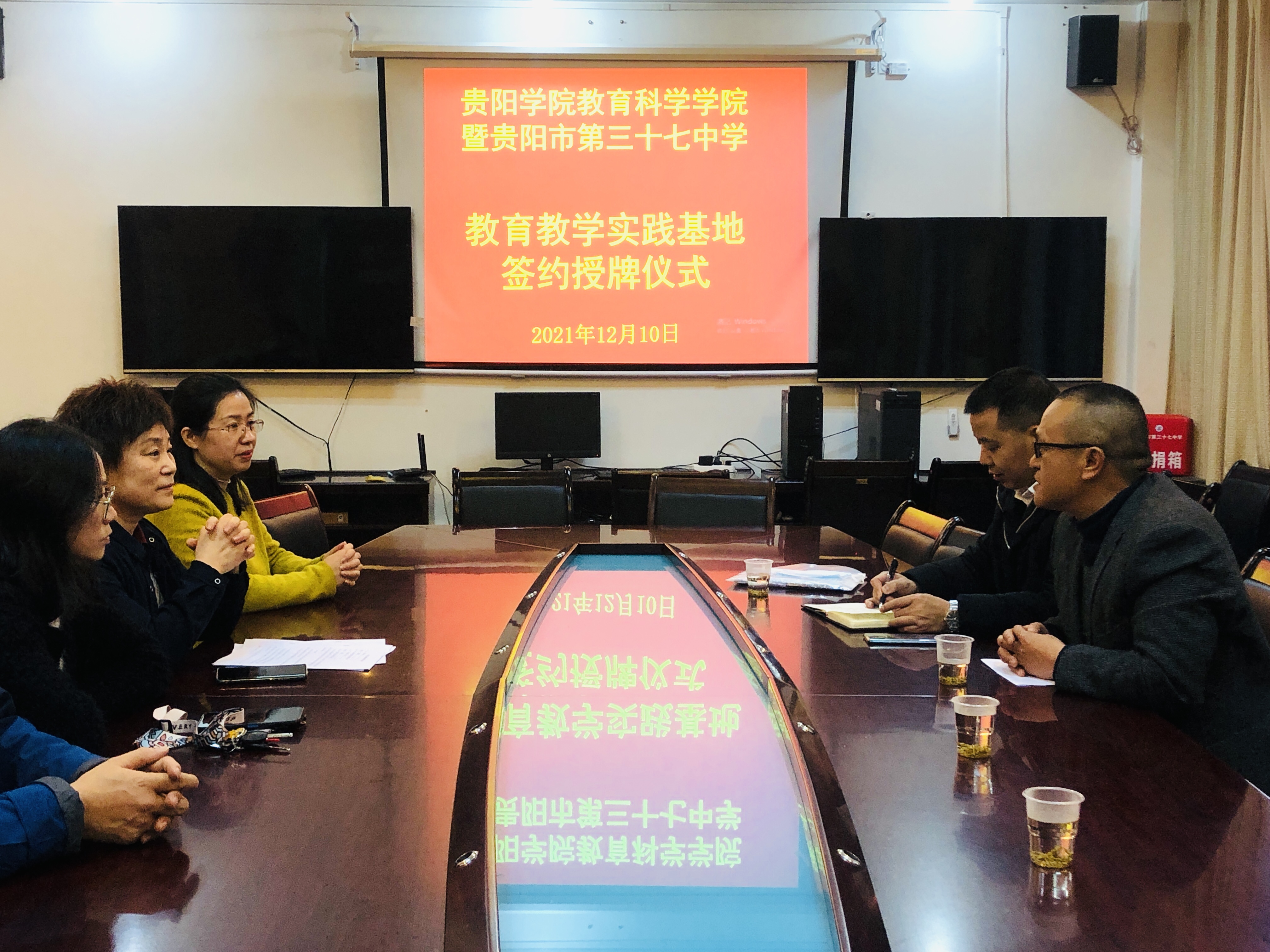 12月10日上午,beat365中国官网教育科学学院党委书记郑仪、副院长余水、心理学教师颜媛、刘蕾一行先后在贵阳市第十七中学、贵阳市第三十七中学、贵阳一中李端棻中学参加beat365中国官网应用心理学专业教育教学实践基地挂牌仪式。贵阳市第十七中学校长周燕、副校长吴嘉、教务处主任罗丹,贵阳市第三十七中学校长张勤、办公室副主任卢启红、教务处主任卢家洪,贵阳一中李端棻中学校长范光留、党支部书记周鹏等分别出席了挂牌仪式。