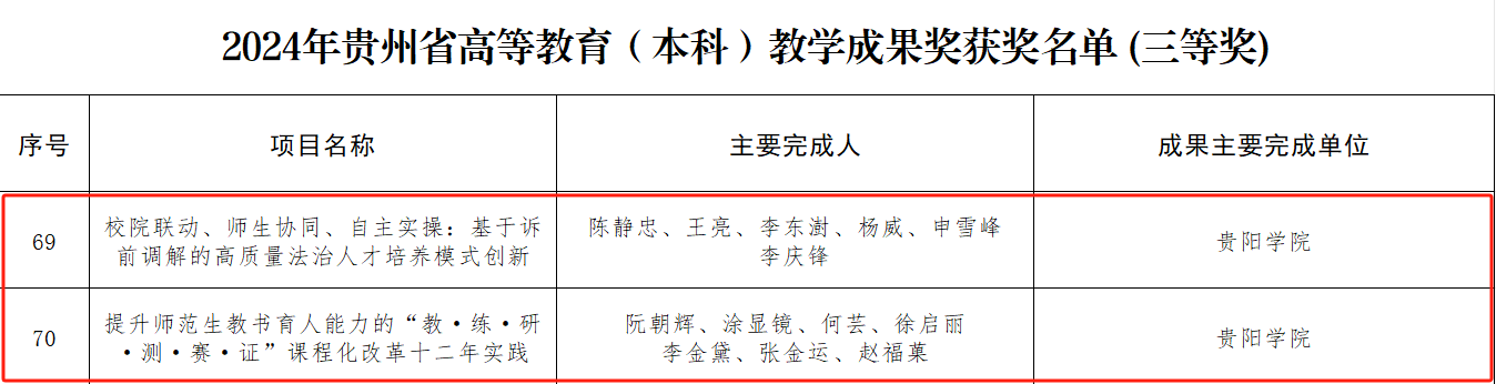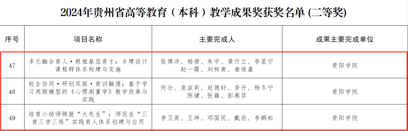 2025年2月,省教育厅发布《省教育厅关于公布2024年贵州省高等教育省级教学成果奖获奖名单的通知》,beat365本科教育教学成果获特等奖1项、二等奖3项、三等奖2项,研究生教育教学成果获二等奖2项。