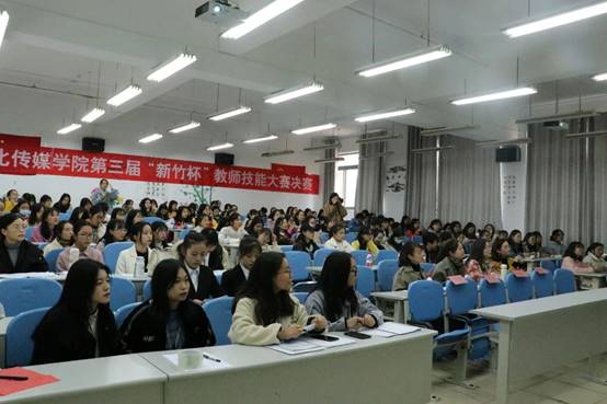 2020年11月6日,文化传媒学院第三届“新竹杯”教学技能大赛决赛在三教3388教室如期举行。文化传媒学院党总支副书记张颖,文传传媒学院副院长王刚,文化传媒学院文学教研室主任康文等老师出席了比赛。贵阳市南明区教师与学习资源中心语文教研员、中学语文高级教师钱萍,贵阳市第十五中学教务主任、中学语文高级教师崔艳,贵阳市南明区第一实验中学语文一级教师沈薇,文化传媒学院语文教育教研主任黄薇副教授担任评委。共有七名选手参加决赛,文化传媒学院汉语言文学专业的150余名同学旁听了本次比赛。
