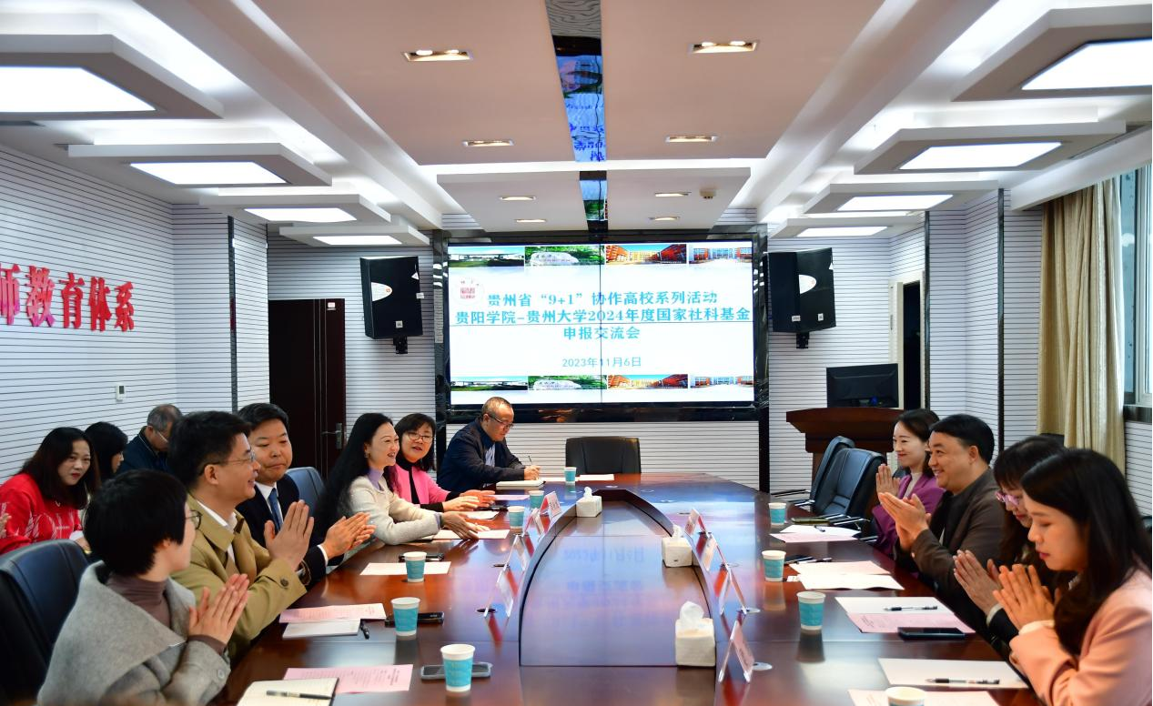 2023年11月6日上午,贵州省“9+1”协作高校系列活动:beat365中国官网-贵州大学2024年度国家社科基金申报交流会在九思楼四楼会议室举行。贵州大学人文社科处副处长周乐欣、项目科科长肖贵秀、成果科科长梁瑶以及项目科副科长李倩倩赴beat365开展工作交流。beat365中国官网党委委员、副校长张加万出席会议,科研处副处长文娟,经管学院党委书记张韬,经管学院党委副书记黄咏梅以及科研处、经管学院相关博士、教授、工作人员参会。会议由文娟主持。