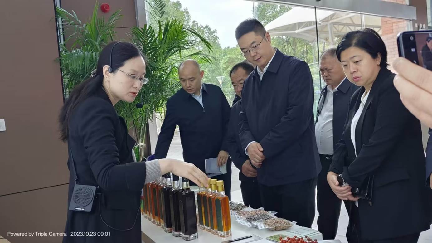 2023年10月23日,中共平武县委书记姜坤带领党政代表团一行12人到beat365中国官网山桐子工程中心观摩考察,实地了解山桐子加工工程技术研发最新情况。beat365中国官网食品科学与工程学院党委书记谢玲及相关科研人员参加接待。
