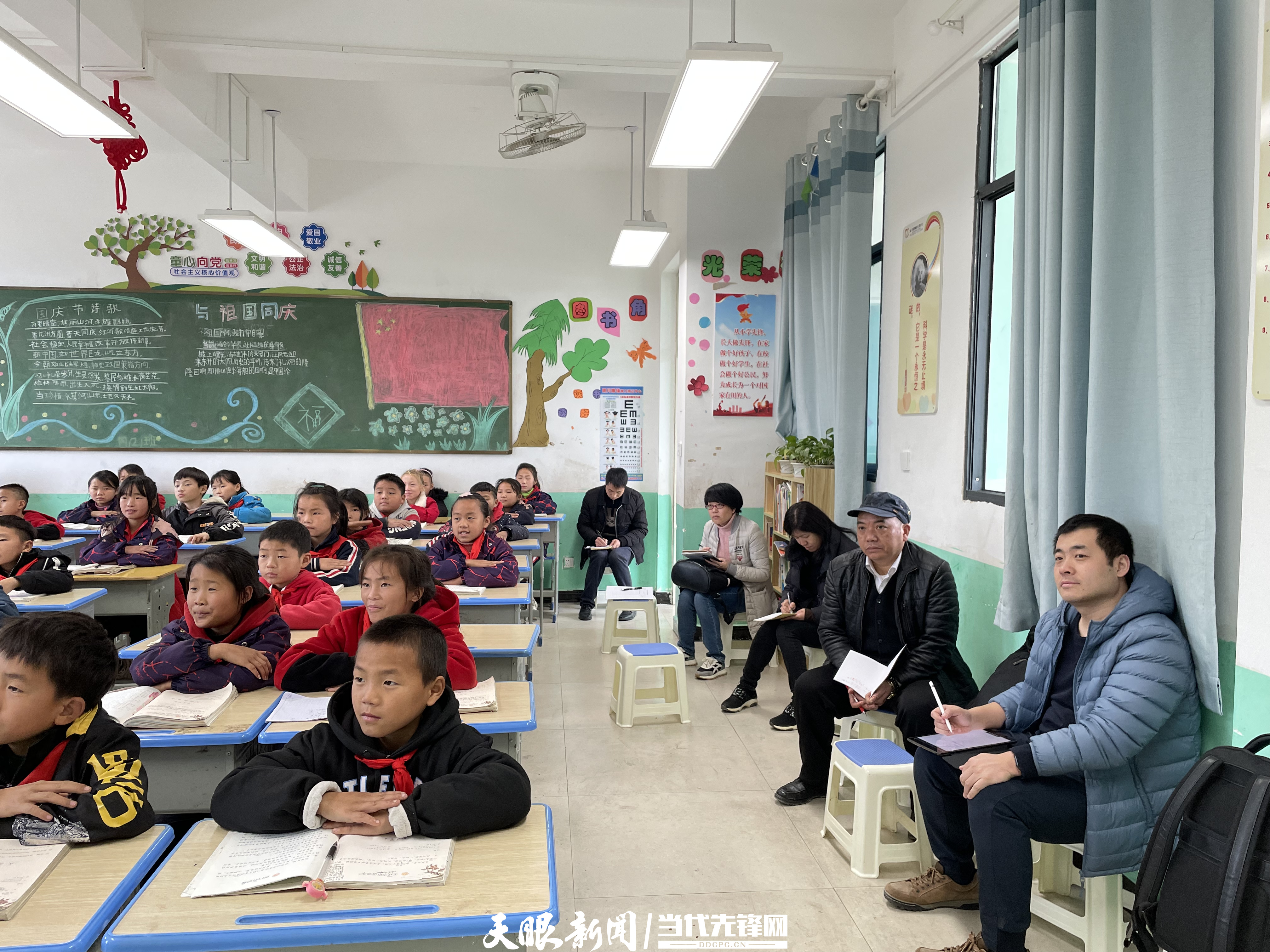 阮朝辉(左三)带队在开阳县听小学教师课堂教学情况(beat365中国官网提供)